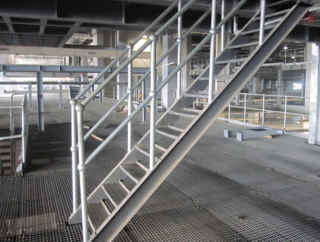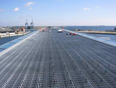 檢修平臺鋼格柵板是用扁鋼按照一定的間距和橫桿進行交叉排列,并且焊接成中間帶有方形格子的一種鋼鐵制品,檢修平臺鋼格柵板主要用來做鋼結(jié)構(gòu)平臺板,鋼梯的踏步板等.檢修平臺鋼格柵板一般采用碳鋼制作,外表熱鍍鋅,可以起到防止氧化的作用。檢修平臺鋼格柵板也可以采用不銹鋼制作。檢修平臺鋼格柵板具有通風(fēng),采光,散熱,防滑,防爆等性能。檢修平臺鋼格柵板應(yīng)用范圍極其廣泛···